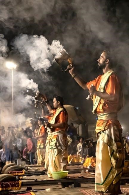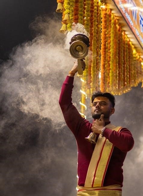 PDF resources often provide visual aids demonstrating the correct hand movements and the arrangement of offerings. Remember to maintain a focused and devotional mindset throughout the process. Some PDF versions even include suggested mantras to recite before and after the aarti, enhancing its spiritual impact.