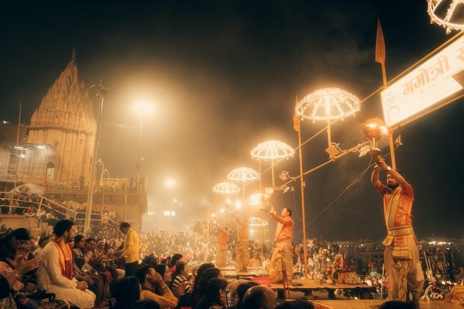 PDF guides often highlight the aarti’s protective qualities, believed to shield devotees from negative energies and obstacles. Consistent practice is said to cultivate positive vibrations, attracting blessings and prosperity. It’s considered a powerful tool for overcoming challenges and achieving spiritual growth.